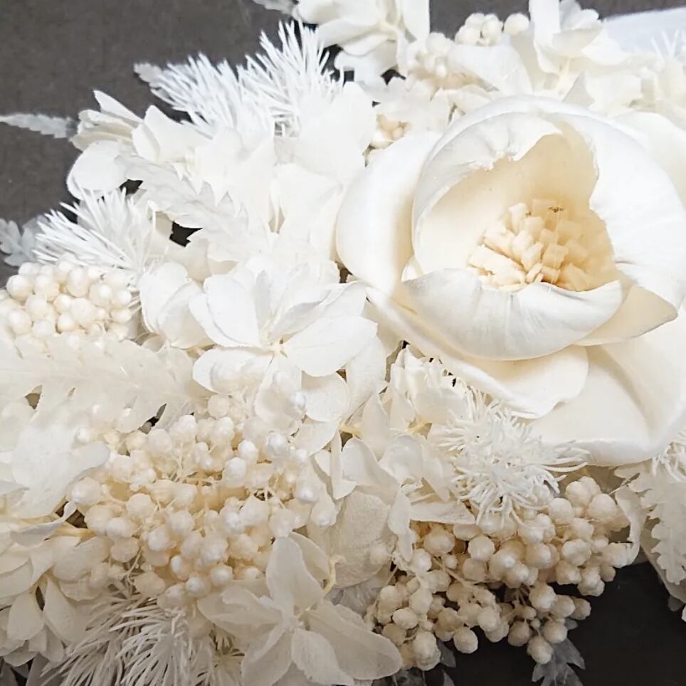 本物のお花を使用していますので、花飾りの部分は繊細な作りになっております。重いものなど載せないようにお気をつけて飾ってください♪